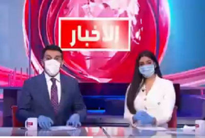 ظهر مذيعا نشرة التاسعة التي تعرض على شاشة mbc على المشاهدين ، وهما يرتديان الكمامات والقفازات في رسالة للجمهور بضرورة اتباع التعليمات والإرشادات الخاصة للوقاية من فيروس كورونا المستجد “كوفيد-19”