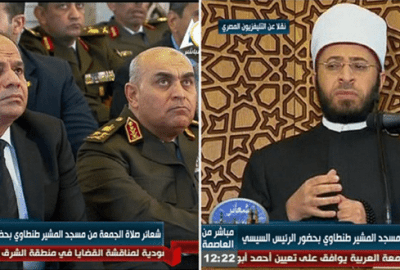 نقل التلفزيون المصري، بالإضافة إلى عدد من القنوات الفضائية الأخرى، صلاة الجمعة من مسجد المشير طنطاوي، بالتجمع الخامس، حيث ألقى الشيخ أسامة الأزهري، الخطبة في حضور الرئيس عبدالفتاح السيسي، والفريق أول صدقي صبحي، وزير الدفاع، وعدد آخر من المسئولين.