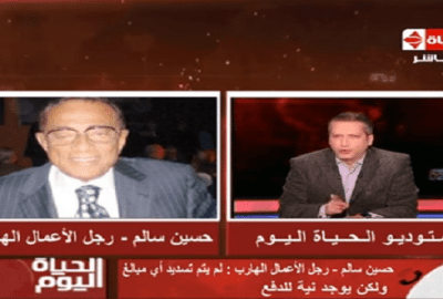 قال حسين سالم، رجل الأعمال الهارب، إنه لم يسدد أي مبالغ للدولة لكن لديه نية لدفع 5 مليارات جنيه لخزينة مصر، موضحًا وجود رغبة حقيقية لعودته إلى مصر مرة أخرى.