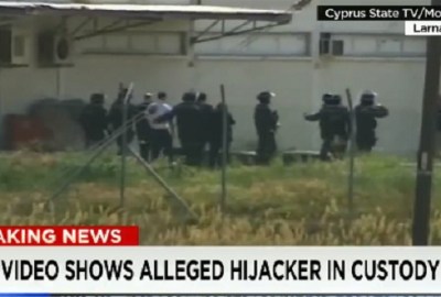 الفيديو الذي لا تزيد مدته عن 17 ثانية يظهر فيه رجال الأمن القبرصيين وهم يحيطون بالخاطف الذي يبدو أكثر شبابا من المصورة المنسوبة لسيف الدين مصطفي المتهم بخطف الطائرة كما يرتدي قميصا أبيض اللون فيما كان الخاطف يرتدي ملابس ملونة حسب الصورة التي أطلقها ماسبيرو!!