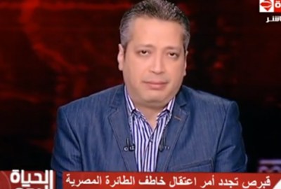 سخر الإعلامي تامر أمين، من السبب الذي جعل خاطف الطائرة المصرية، أن يهبط بها في قبرص، وهو رغبته في رؤية زوجته التي تقيم هناك، قائلًا: “الظاهر أن المشاكل كلها بتيجي من ورا الستات لدرجة أن الراجل خطف الطايرة علشان يشوف مراته.. الستات سبب كل الكوارث”.