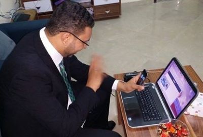 بسبب عدم قدرته على العودة إلي مصر لأسباب أمنية، قام أحد العاملين في قناة الجزيرة مباشر مصر بعقد قرانه عبر “سكاي بي” قبل قليل بديلاً عن حضوره، فيما تلقي التهنئة من زملائه ليكون الزواج الكترونيا.