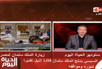 رحب مُقدم برنامج “الحياة اليوم”، بملك السعودية، قائلًا: ” أهلا بيك في بيتك يا ملك المسلمين”.