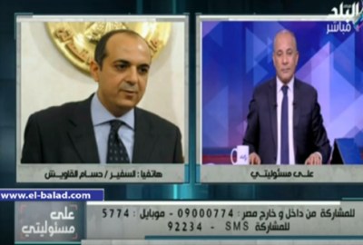 علّق السفير حسام القاويش المتحدث باسم مجلس الوزراء على بيع جزيرتي “تيران وصنافير” للمملكة العربية السعودية خلال مداخلة هاتفية لبرنامج “على مسئوليتي” الذي يُقدمه أحمد موسى، على شاشة صدى البلد، حيث بدأ موسى بتوجيه سؤالًا ساخرًا للقاويش قائلًا: “بعتوا كل جزيرة بكام يا فندم؟، عايزين نصيبنا من الجُزر”.