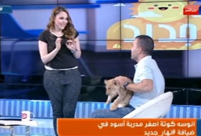 قام الاعلامى خالد عليش، بحمل أسد صغير “شبل” على الهواء ببرنامج “نهار جديد”، المذاع على قناة النهار اليوم، خلال تقديمه فقرة مع المدربة العالمية أنوسة كوتة، أصغر مدربة أسود فى مصر.