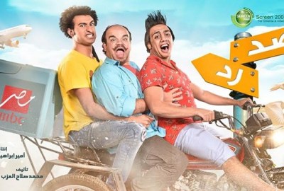 ونشرت الشركة البوستر عبر صفحتها الرسمية على الفيس بوك، ويتصدره أبطال العمل الثلاثة نجوم “مسرح مصر” وهم على ربيع وأوس أوس ومحمد عبد الرحمن، وظهروا وهم يركبون دراجة نارية.