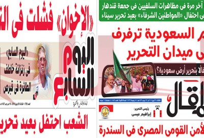 ينشر إعلام.أورج أبرز مانشيتات صحافة القاهرة الصادرة صباح يوم الثلاثاء ٢٦ أبريل ٢٠١٦، وكيف غطت الصحف الأحداث في الذكرى الرابعة والثلاثين لعيد تحرير سيناء والذي تزامن مع دعوات للتظاهر احتجاجا على اتفاقية ترسيم الحدود بين القاهرة والرياض والتي نتج عنها التنازل عن جزيرتي تيران وصنافير للمملكة العربية السعودية.