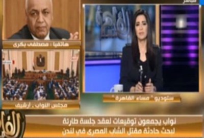 وأضاف “بكري”، خلال مداخلة هاتفية مع الإعلامية إنجي أنور، ببرنامج “مساء القاهرة” المذاع عبر فضائية TeN مساء اليوم الأربعاء: “المهم الآن هو عقد اجتماع للجنة الشئون الخارجية ومن الممكن أن تنضم إليها لجنة الدفاع والأمن القومي لبحث هذه القضية والتحرك سريعًا سواء تشكيل وفد أو مخاطبة الجهات المعنية في بريطانيا من خلال السفارة المصرية”.