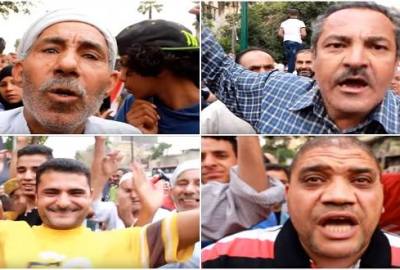 ووسط صراخ الحضور، مرددين “السيسي رئيسي وربنا يصلح حاله”، تطوع أحد المتجمعين، ليقوم بتمزيق إحدى الصحف، ثم قام آخرون بدهسها بأقدامهم، كما اتضح من الفيديو، تواجد عدد من أهالي “عزبة خير الله”، حيث قال أحد كبار السن: “ربنا يبارك لنا في السيسي، ويخلي باله معانا.. والغلابة في عزبة خير الله كتير وتعبانين وشقيانين مش لاقيين اللقمة ناكلها”، ليظهر صوت إحدى السيدات في الخلفية تقول: “خليه ينزل يشوف الغلابة”.