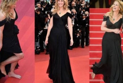 وأطلت جوليا على السجادة الحمراء بإطلاله أنيقة، لكن أثناء صعود جوليا على الدرج للوصول إلى قاعة الاحتفال، كشفت عن ساقيها وأنها لا تنتعل حذاء، كانت جوليا تنتعل في أول الأمر حذاء أسود أنيق، لكنها فضلت السير على السجادة الحمراء بكل أريحيه حتى لا تتعرض لأي موقف محرج