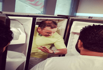 في محاولة للتعبير عن الارتفاع الكبير في درجات الحرارة، التي تشهدها مصر خلال هذه الأيام، ظهر الإعلامي جابر القرموطي، في مقدمة برنامجه “مانشيت”، وهو داخل “ثلاجة”، ويرتدي “تيشيرت نص كم”، كما أحضر بعض المأكولات المعتاد تناولها خلال فصل الصيف مثل البطيخ والطماطم والخيار.