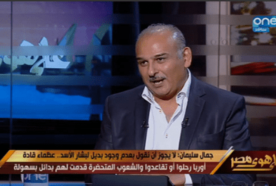 وصنف “سليمان”، موقفه من بشار على أنه عمل وطنى وليس سياسى، مضيفاً “لست معارضاً لبشار الأسد ولكننى أبحث عن حل لوطنى، وأنا ضد كل ما يقف حائلاً أمام المستقبل، وأسعى للملمة الجراح، وإنهاء هذه الكارثة التى لم تشهد البشرية لها مثيلاً منذ الحرب العالمية الثانية، وبالتالى لا بد من ثمن يدفع”.