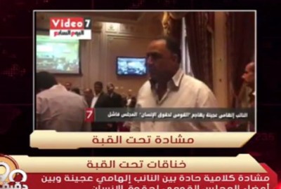 وقد عرضت الإعلامية إيمان الحصري، فيديو “الخناقة”، خلال حلقة الاثنين من برنامج “90 دقيقة”، المذاع على قناة “المحور”، وقد علق النائب إلهامي عجينة خلال اتصال هاتفي بالبرنامج قائلًا إن سبب المشادة هو “عدم ديمقراطية وفد القومي لحقوق الإنسان”.