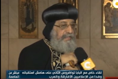 وقال البابا خلال الحوار، إن المجتمع المصري يعيش في سلام، وتجمع بين المسيحيين والمسلمين، كما أن الكنيسة ترتبط بعلاقات وثيقة مع مؤسسة الرئاسة والحكومة المصرية، وكذلك مع الأزهر. وأضاف أنه لا يمكن التفريق بين المسلم والمسيحي داخل مصر، منوهًا إلى أن الأسرة المسيحية تجيد تنظيم النسل؛ لذا يبلغ عدد المسيحيين في مصر 15 مليون فقط.