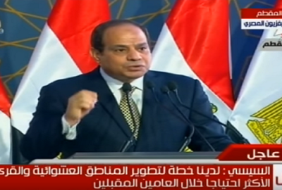 وتعهد الرئيس المصري بأنه خلال عامين سيتم القضاء على مشكلة العشوائيات تماما، وأن الحكومة قادرة على حل تلك المسألة، مؤكدا أن 50 % من مساحة مصر عشوائيات.