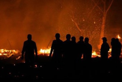 وانطلقت سيارات المطافئ والإسعاف إلى مكان اندلاع الحريق في محاولة للسيطرة على الحريق.