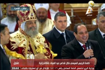 فاجأ الرئيس عبد الفتاح السيسي الجميع بالذهاب إلى مقر الكاتدرائية المرقسية بالعباسية ، حيث احتفال الإخوة الأقباط بعيد الميلاد ، و هذه أول مرة يحضر فيها رئيس مصر القداس .