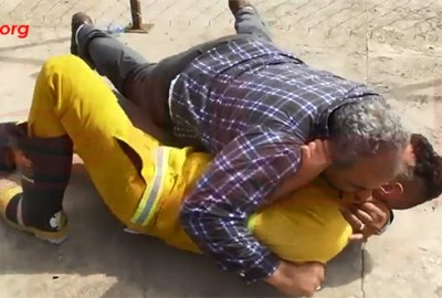 انهال الفنان بيومي فؤاد بالضرب على الفنان رامز جلال وقام بـ”عضه” من رقبته بعد اكتشافه للمقلب الذي وقع ضحيته خلال حلقة اليوم، الأحد من برنامج “رامز يلعب بالنار”، مُضيفًا: “أنا اتبهدلت وعايز امشي”.