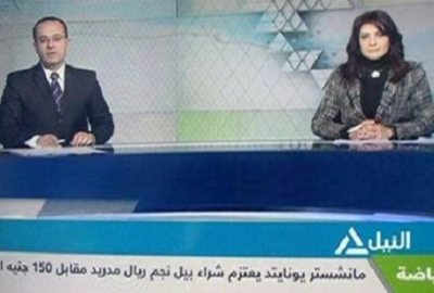 وقعت قناة النيل للأخبار المصرية في خطأ فادح جديد بنشرها عبر شاشتها خبر عزم ادارة مانشستر يونايتد الإنجليزي شراء النفاثة الويليزية جاريث بيل لاعب ريال مدريد الاسباني مقابل 150 جنيها استرليني فقط أى مايعادل 1500 جنيها مصريا !، ويبدو أن فريق الاعداد للقناة أغفل وضع كلمة مليون في الخبر للمشاهدين.