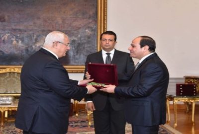 منح السيد الرئيس عبد الفتاح السيسي اليوم الثلاثاء، وسام الجمهورية من الطبقة الأولى لكل من الرئيس السابق المستشار عدلي منصور رئيس المحكمة الدستورية العليا السابق، والقاضي/ أحمد جمال الدين عبد اللطيف رئيس محكمة النقض السابق، والمستشار الدكتور/ جمال طه إسماعيل ندا رئيس مجلس الدولة السابق، والمستشار/ سامح محمد كمال إبراهيم عيد رئيس هيئة النيابة الإدارية السابق، والقاضي/ أيمن محمود كامل عباس رئيس محكمة استئناف القاهرة السابق.