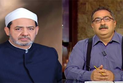 4- “عباس شومان وكيل الأزهر، ونقدر نقول عليه الحاكم الفعلي في مؤسسة الأزهر، هو الذي نافق مرسي، وتحدث عنه كأنه خليفة من خلفاء المسلمين، وقال إن من حقه أن يكون قاضيَا، هو ده بقي اللي هيحددلنا ازاي نواجه الإرهاب، وكمان بيشارك في وضع قانون..”.