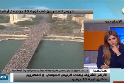 وقال النجار، الشكر والتقدير إلى أحمد الطيب، شيخ الأزهر الشريف، وقداسة البابا تواضروس الثاني، بابا الإسكندرية وبطريرك الكرازة المرقسية، والمجلس العسكري، لإخراجهم البلاد من نفق مظلم وإعادتها للمسار الصحيح، كما نوجه الشكر إلى الرئيس محمد حسني مبارك، لإنقاذه البلاد من جماعة “الإخوان المسلمين”، ما جعل مقدمة البرنامج، تنبهه قائلةً: “مش مبارك بقي .. تقصد السيسي”.