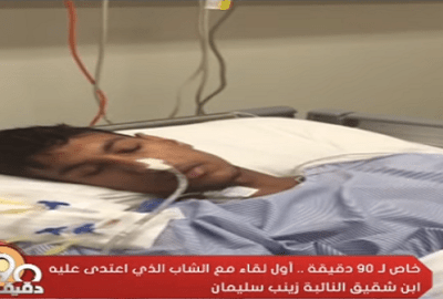 أذاع برنامج “90 دقيقة” أول لقاء مع الشاب بلال درويش، المعتدى عليه من ابن شقيقة النائبة زينب سالم، وقال “بلال” إنه كان يحاول الدفاع عن شقيقته ووالدته بعدما عاكسهما ابن شقيقة النائبة، ولكنه اعتدى عليه بالسكين و”الشوم”، على حد ذكره.