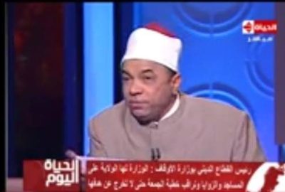 صرح “طايع” خلال حواره مع الإعلامية لبنى عسل في برنامج “الحياة اليوم ” المذاع على شاشة الحياة، مساء اليوم، السبت، أن الخطبة المكتوبة هدفها ضبط الوقت وتحديد عناصرها وضبط الخطاب الديني ومواجهة الانفلات وسيتم مراقبة خطبة الجمعة حتى لا تخرج عن أهدافها، بحسب قوله.