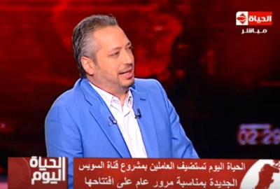 يذكر أن الإعلامي تامر أمين استضاف خلال حلقة اليوم، الجمعة، في برنامجه “الحياة اليوم”، المذاع على قناة الحياة الفضائية، عددا من العاملين في حفر قناة السويس الجديدة، إحتفالاً بذكرى مرور عام على افتتاح القناة الجديدة في ٦ أغسطس من العام الماضي.