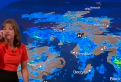 انفجرت مقدمة النشرة الجوية على قناة BBC في الضحك، أثناء تقديم النشرة الجوية على الهواء، ولم تستطع تمالك نفسها والكف عن الضحك.
