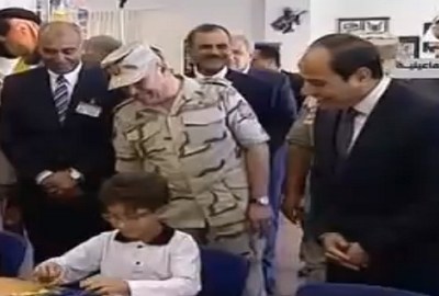 داعب الرئيس عبد الفتاح السيسى، مجموعة من الأطفال المتواجدين فى نادى الفيروز بمدينة الإسماعيلية الجديدة، وعلق على رسومات أحد الأطفال ضاحكًا: “ده الشنب؟”.