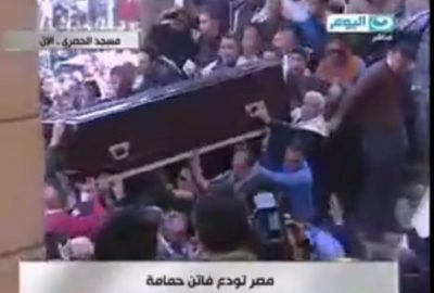 تعرض نعش الفنانة الراحلة، فاتن حمامة لحالة من الاهتزاز، نتيجة لانهيار سلم أحد أبواب مسجد الحصري، بعدما تدافع المواطنين على حمل النعش، ويظهر ذلك في الفيديو في الدقيقة 2:16، مما أدي لسقوط عدد كبير من المشيعين على الأرض، وذلك أثناء خروج الجثمان عقب أداء صلاة الجنازة عليه.
