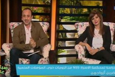 قال أحمد الشاعر مقدم برنامج “صباحك عندنا” إن هناك دراسة أجريت بمحكمة الأسرة المصرية مفادها أن 55% من الزوجات الحاصلات على مؤهلات علمية، لا يمانعن ضرب أزواجهن.
