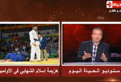 علق الإعلامي تامر أمين في برنامجه “الحياة اليوم” المُذاع على شبكة “الحياة” على مشاركات المصريين بأولمبياد ريو دي جانيرو 2016، حيث بدأ بخسارة اللاعب المصري إسلام الشهابي أمام اللاعب الإسرائيلي في “الجودو”، بفارق 100 نقطة أمام لا شيء لصالح الأخير.