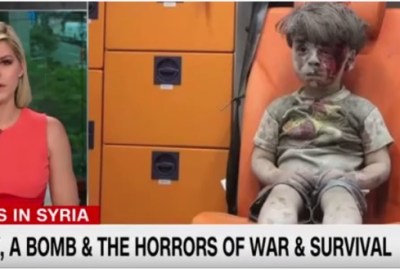 ظهرت مذيعة قناة CNN الأمريكية، كيت بولدوان، وهي تغالب الدموع أثناء قراءتها خلال عرضها لمقطع فيديو يظهر انقاذ الطفل السوري عمران دقنيش من تحت الأنقاض في مدينة حلب التي تتعرض لقصف من قبل الطيران السوري والروسي، ودخلت في نوبة بكاء تأثرًا بهذا المشهد الأليم.