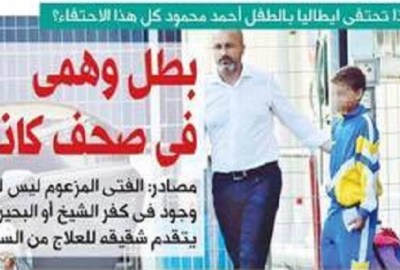 تناولت جريدة “البوابة” في عددها الصادر اليوم الأحد، تقريرًا تصدر جزءً منه الصفحة الأولى بعنوان “لماذ تحتفي إيطاليا بالطفل أحمد محمود كل هذا الاحتفاء؟.. بطل وهمي في صحف كاذبة”، والتي اعتمدت فيه على مصادر، تؤكد أن الطفل ليس له وجود في كفر الشيخ أو البحيرة ولم يتقدم شقيقه للعلاج من السرطان، كما ادعى.