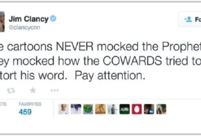وكان كلانسي كتب على حسابه على “تويتر”في 6 يناير حينما تعرضت الصحيفة الفرنسية الساخرة “شارلي إيبدو” للهجوم إن “الرسوم الكاريكاتورية لم تهزأ من النبي محمد. لقد هزئت من الطريقة التي حاول بها الجبناء تشويه كلامه. انتبهوا”.