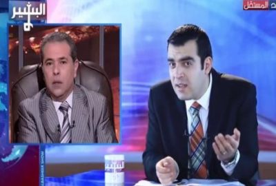 سخر الإعلامي العراقي أحمد البشير من الملاسنة الكلامية بين الإعلامي المصري توفيق عكاشة والإعلامي العراقي، وجيه عباس، حيث سب كلاهما بلد الآخر.