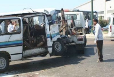 لقي 16 شخصًا مصرعهم في تصادم ميكروباص بسيارة نقل على طريق الواحات البحرية – الفرافرة.