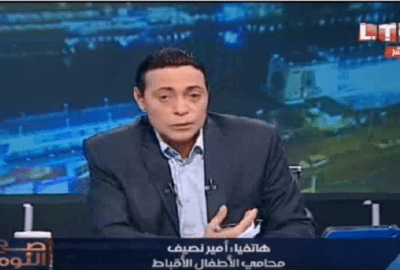 طالب محامي الأطفال الرئيس عبد الفتاح السيسي بضرورة التدخل وإنقاذ الأطفال، مضيفًا:” “انا عارف ان قلبك واجعك عليهم عشان هما ولادك” وتابع : “احنا عايزين ضابط شرطة عبد الفتاح السيسي، ودكتور عبد الفتاح السيسي، وقاضي يكون عبد الفتاح السيسي عشان كل واحد ياخد حقه”