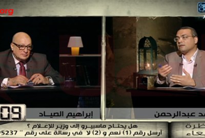 في مناقشة خاصة حول مصير ماسبيرو، وسُبل عودته إلى ريادته الإعلامية؛ عقد الإعلامي إبراهيم عيسى مناظرة بين الكاتب الصحفي محمد عبد الرحمن رئيس تحرير موقع إعلام دوت أورج، وإبراهيم الصياد المتحدث الرسمي للمنتدى المصري للإعلام.