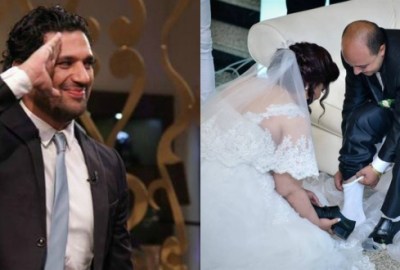 أضاف “الرداد” خلال حواره مع الإعلامية منى الشاذلي في برنامج “معكم” المُذاع عبر فضائية سي بي سي، أنه لو كان عريساً وطلبت منه العروس أن تغسل قدميه أثناء الحفل “هيتكسف”، ثم قال ممازحاً “هقوم شاددها من الطرحة”، وعند مشاهدته للفيديو أثناء الحلقة، وتحديداً عند عرض اللقطة التي تقوم فيها العروس بمسح قدميّ العريس، سخر الرداد، قائلاً “نشفي نشفي” ثم وجّه حديثه للمذيعة “أنا عايزك تستضيفيها كمان سنة”.