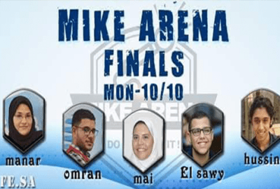 مسابقة “MIKE ARENA” عبارة عن ورشة عمل إحترافية للتدريب على مهارات العرض والتقديم، التحق بها في البداية ٢٢ مشترك من كليات مختلفة (هندسة – طب – آداب – تربية – تجارة)، واستمرت لمدة إسبوعين، وكان محتواها تعليم مهارات العرض والتقديم وكل ما يتعلق بذلك فى أربع مجالات مختلفة هي ( Business , Scientific , motivation and public speaking )، وبعد الانتهاء من التدريب؛ شارك بالمسابقه ١٤ متسابق وتأهل منهم ٧ متسابقين للمرحله النهائية.