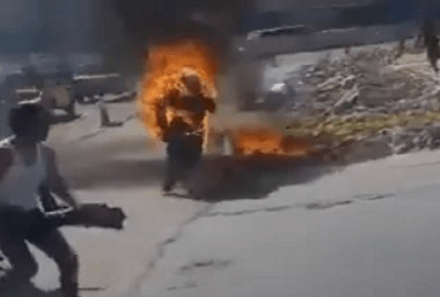 وأضافت مديرية الصحة، في بيان منها اليوم، أن المصاب يعمل سائق تاكسي، وأنه مصاب بحروق بنسبة 75% في البطن والصدر والساقين، موضحا أن الشاب الآخر الذي حاول منعه من إشعال النيران في نفسه، يدعى عبدالعليم محمد عبدالعليم، ويبلغ من العمر 32 عاما، ويعمل سائق تاكسي أيضا، ومصاب بحروق بنسبة 15% في الساعدين.