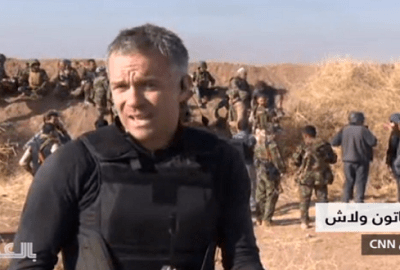 اندلع تبادل لإطلاق النار بين أعضاء جماعة داعش الإرهابية، وقوات البشمرغة بينما كان مراسل شبكة CNN، نِك باتون والش، ينقل خبراً على مشارف مدينة الموصل العراقية، اليوم الاثنين.