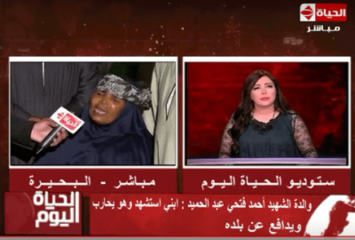 تابعت خلال حوارها مع أحد مراسلي البرنامج، أنه كان حال نزوله إجازة كانت تعطيه أموالًا لشراء ملابس له بالإضافة إلى شراء الطعام في أثناء خدمته العسكرية، قائلة “شقيت عليه في الغيطان”، مؤكدة في صراخ من شدة حزنها أنها كانت تقول في نهاية كل مكالمة تجمعها مع ابنها “استودعتك عند الله”، حيث أنها كانت شديدة القلق منذ انتقاله إلى سيناء.