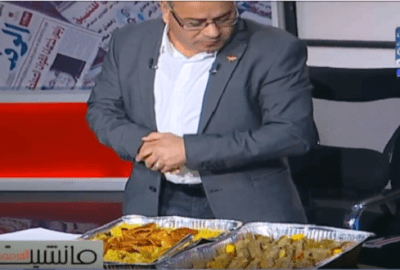 أشار مقدم برنامج “مانشيت القرموطي”، إلى أنه أصر على الظهور بـ”المحشي”، على الهواء، لتوضيح تصريحات وزير التموين كما فعل سابقًا،تعليقًا على أزمات عدة، خلال حلقات ماضية، وذلك حتى تظهر الحقيقة للرأي العام، لافتًا إلى أن هذه الوجبة أهداهم إياها عضو مجلس النواب سعيد حساسين، مالك القناة.