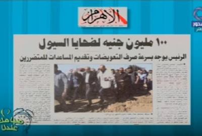 تابعت أن جريدة الأخبار وروز اليوسف، تناولوا غضب الأهالي من الحكومة، بجانب فلوس التعويضات، مشيرة إلى جريدتي الوفد والوطن تناولوا احتجاجات الأهالي ضد رئيس الوزراء، وأن جريدة اليوم السابع نشرت زيارة “إسماعيل” لـ”رأس غارب” ومعايشته للمعاناة مع الأهالي من أضرار السيول.