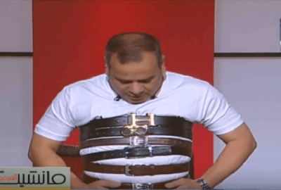 ظهر الاعلامي جابر القرموطي فى حلقة اليوم من برنامجه “مانشيت القرموطي”، المذاع على قناة العاصمة الجديدة، بـ 10 احزمة قام بربطها على بطنه تضامنا مع المواطنين المصريين الذين يشدون الحزام كل يوم بسبب ارتفاع الأسعار، والأزمة الإقتصادية التى تواجهها الحكومة، كما ارتدى القرموطي تيشرت كتب عليه “شدوا الحزام”.