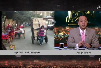 ناشد الإعلامي عمرو أديب مشاهديه بمساعدته في البحث عن الفتاة التي تم تداول صورتها عبر مواقع التواصل الاجتماعي، وهي تدفع بعربة محملة بالبضائع، ويظهر بجانبها مجموعة من الشباب جالسين على “مقهى”، موضحًا أن من يرشده عن عنوان تلك الفتاة سيعطيه مكافأة مالية، وذلك من أجل تكريمها.